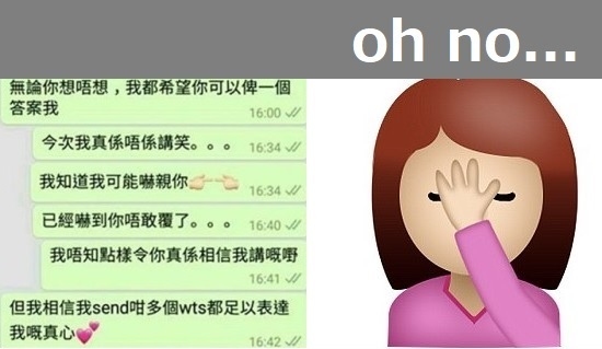 表白雖要莫大勇氣,好多人都怕面對面開不了口,選擇whatsapp傳情:
