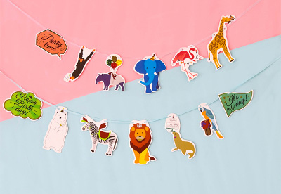 超萌! 珍獸動物派對彩旗 (約3米)