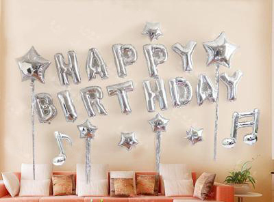 造型鋁膜氣球 - 【慶生系列】"HAPPY BIRTHDAY" 裝飾組合 - 銀雨音符