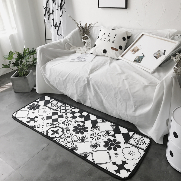 北歐風家品系列 - 黑白拼磚圖案地毯