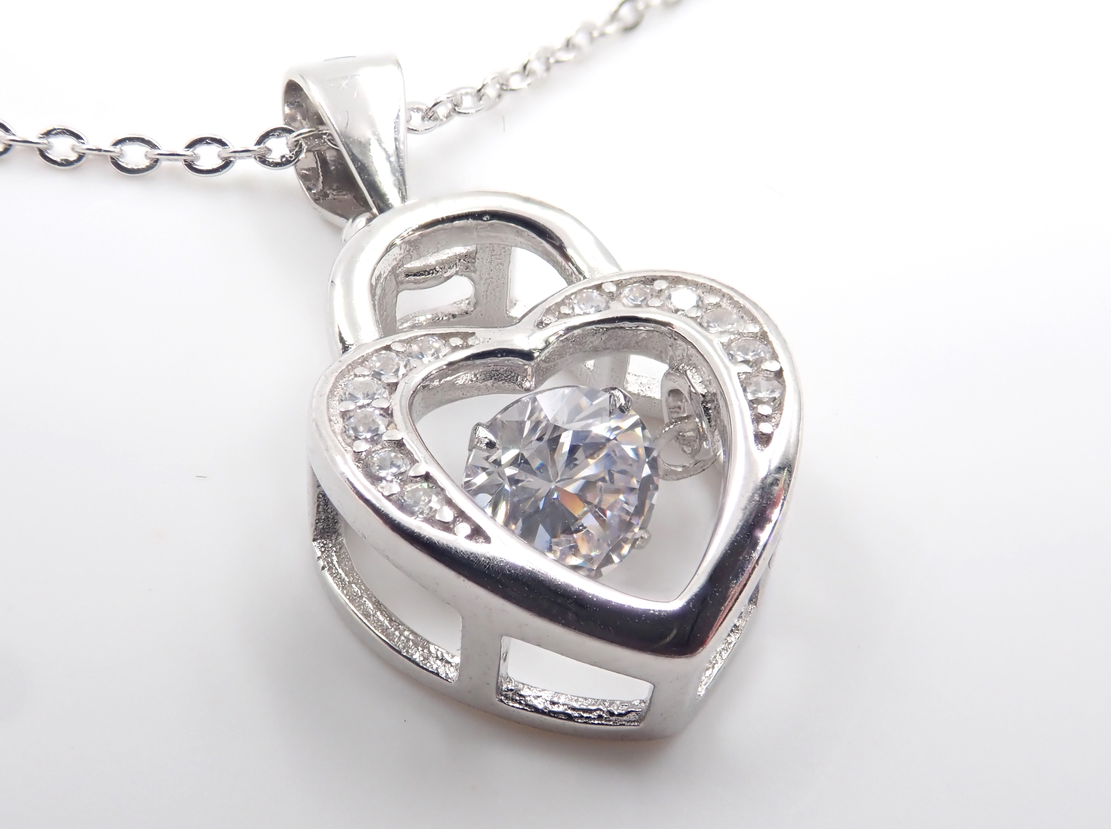 [Sparkling Diamond 系列] 心型鎖925 純銀頸鏈 (蘇聯鑽) - 八心八箭鑲嵌